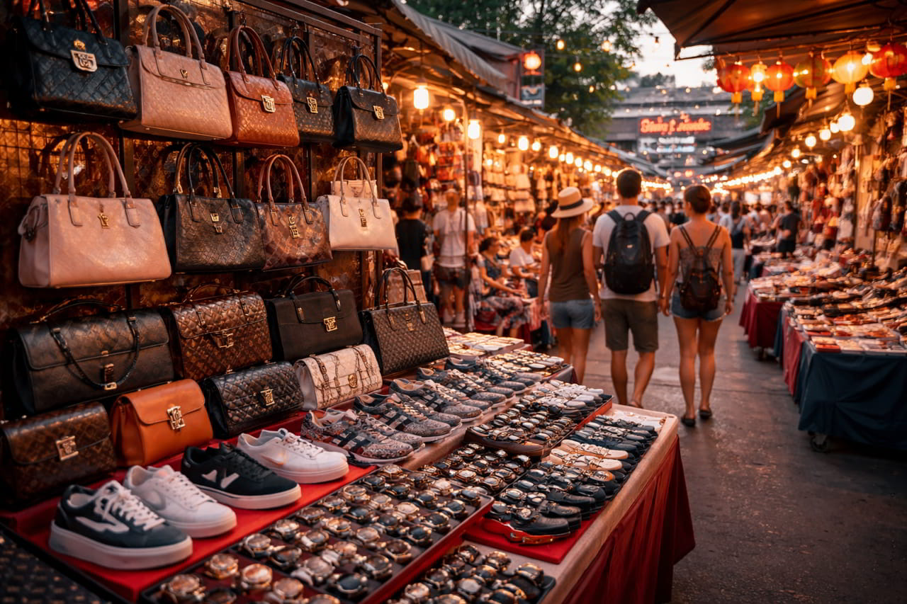 À Bangkok, plusieurs zones sont régulièrement citées. Le MBK Center reste un cas emblématique, même si la situation y évolue et que les vendeurs se font plus discrets. Dans les marchés de nuit, notamment autour de Patpong ou dans certains secteurs très touristiques, il arrive encore de voir apparaître des copies de sacs, de montres ou de vêtements, souvent proposées de manière informelle.